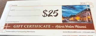 Weston MO Gift Certicates are available for sale in the Chamber office!